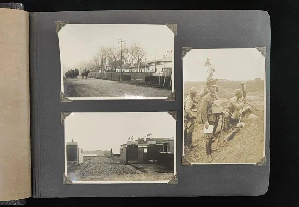 由日军拍摄的《在满记念》相册内有154张日本侵华时期的原版照片,记录了日军勘察、行军等多个方面的影像。