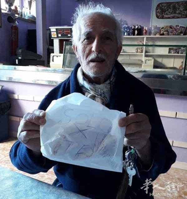 简讯报道:02月14日在Frosinone(弗罗西诺内)一名老人坚持56年为妻子每天买面包,且都会在装面包的纸袋上写上爱的祝福。