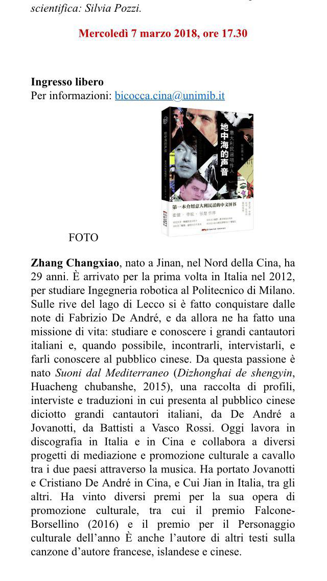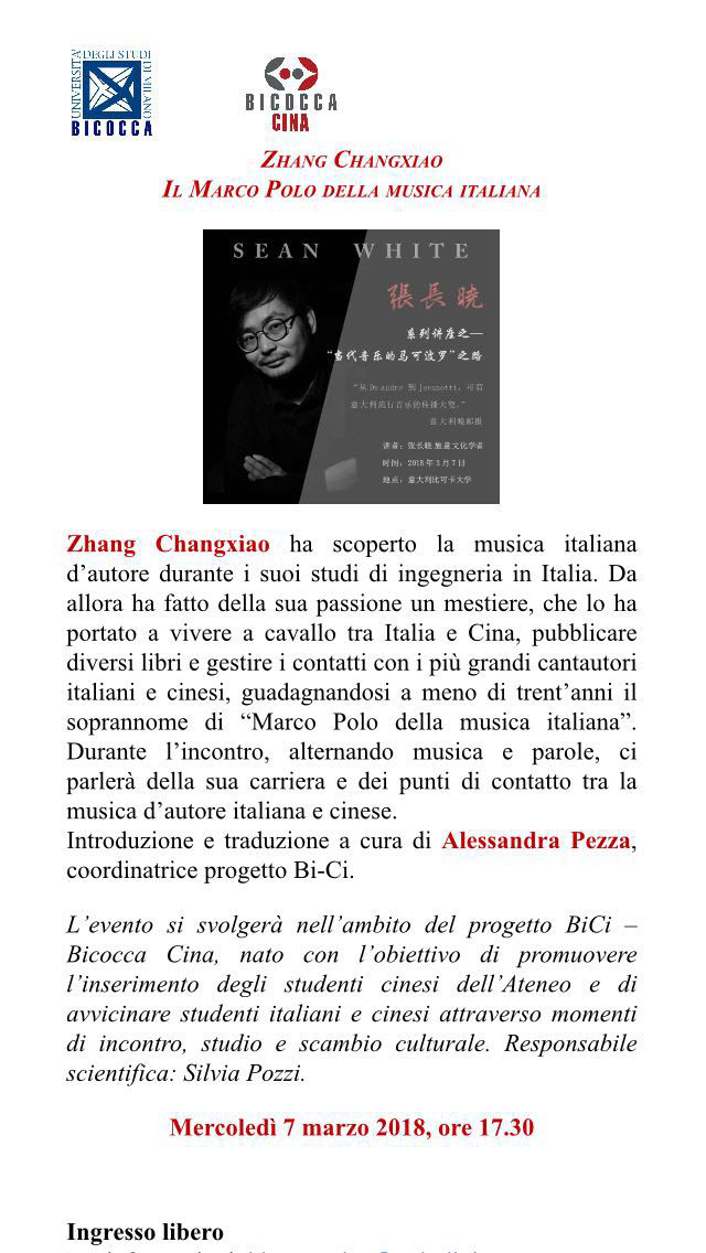 2018年开启意大利八城高校宣讲会(米兰、威尼斯、都灵、博洛尼亚、摩德纳、佛罗伦萨、罗马、那不勒斯),3月7日首站作客意大利米兰比可卡大学为我们讲述他的马可波罗音乐之路。