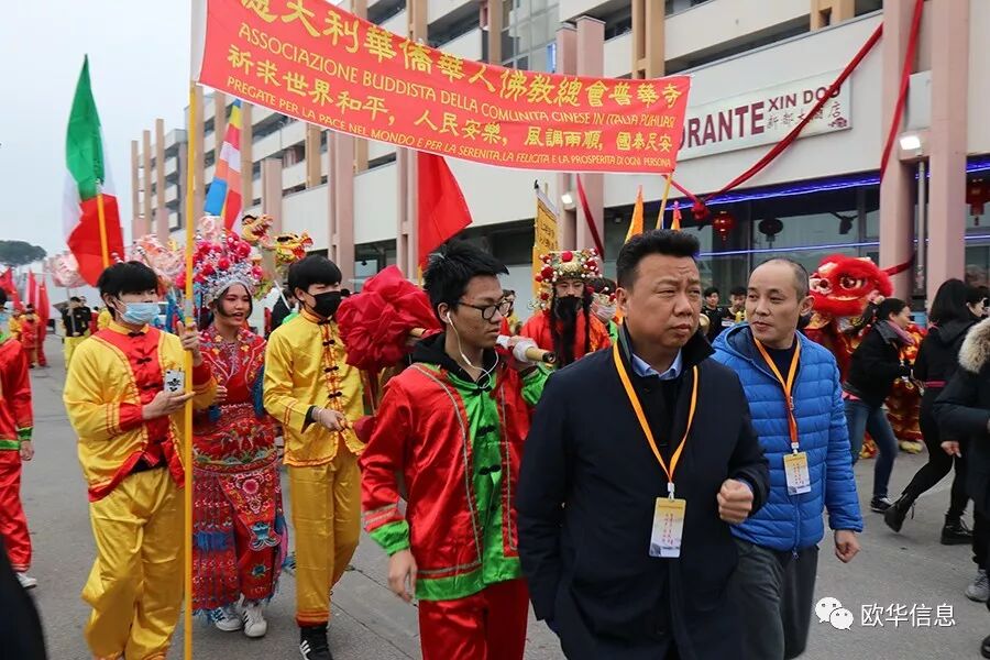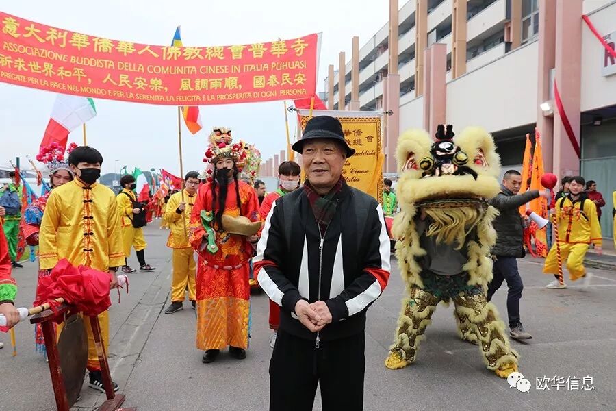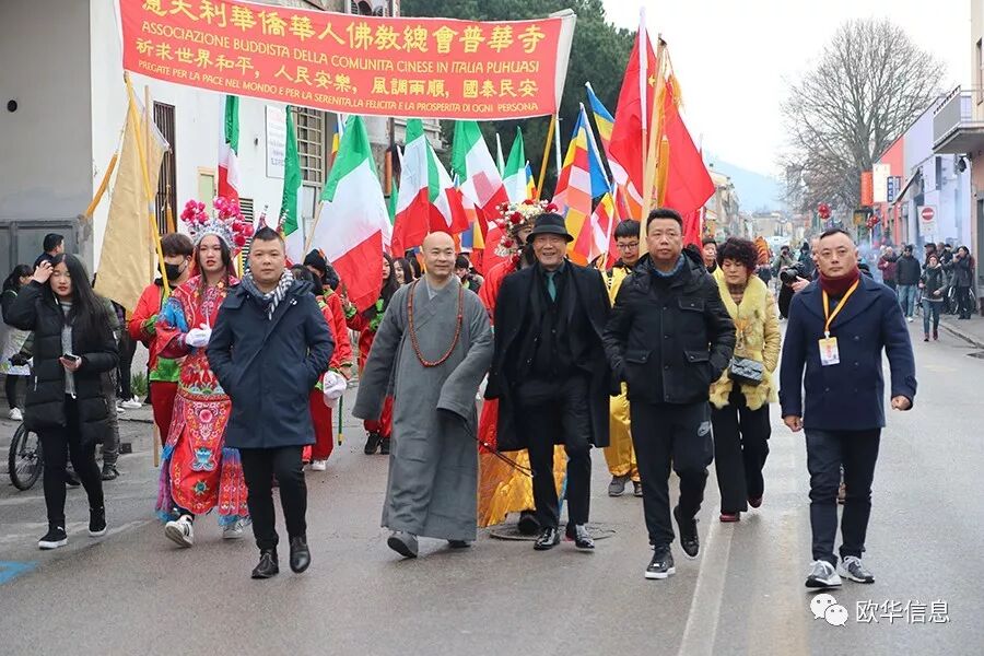 意大利华侨华人佛教总会会长黄树林对各界人士、各位领导、各大功德主、广大侨商、十方信众的共同参与表示衷心的感谢,普华寺舞龙舞狮庆新春祈福盛会2月18日巡游普拉托华人街,一路走到普拉托市政府广场在一片欢腾声中圆满结束。