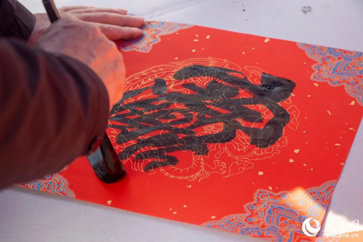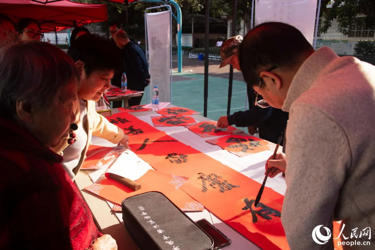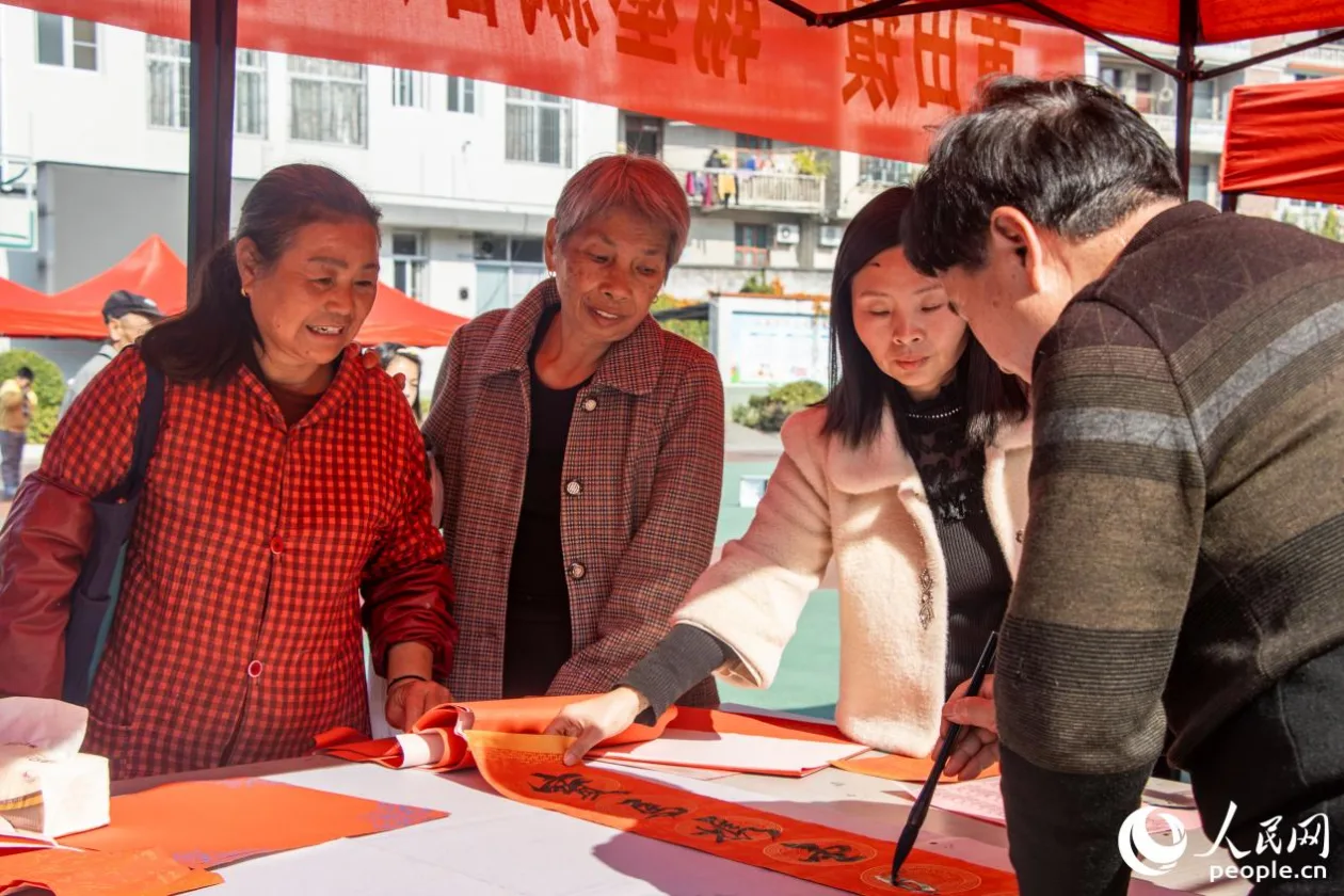 书法家正在为当地居民题写春联。人民网 林铭贤摄