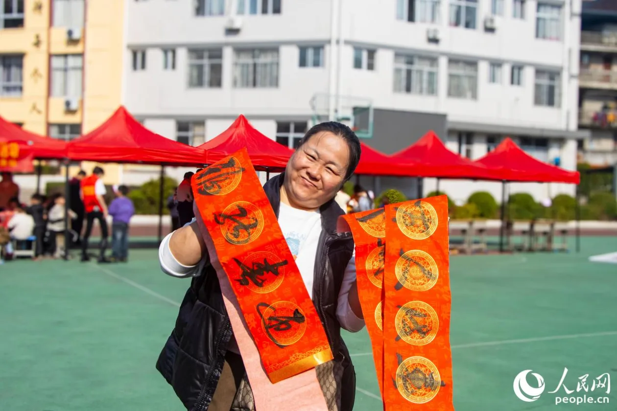活动现场,孩子们最爱的烤肠摊子也支起来了,香味和吹拉弹唱的乐声串在一起飘了老远。“爷爷,这个就是年味吗?”吃着烤肠的小孩一手捏着一把春联往家走,向老人问道。“对呀,这就是过年的样子。”老人边说边牵起孙子的手腕,随后叮嘱着“小心看路”。在他们的身后,一副副春联“躺”在操场上等待“认领”,等待见证一场场即将到来的阖家团圆……