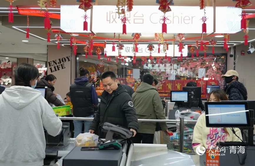 人民网格尔木2月6日电 (记者甘海琼)距离农历新年越来越近,青海省海西蒙古族藏族自治州格尔木市的年货市场已全面升温。2月6日,老字号嘉年华暨格尔木市“昆仑启新岁·乐购暖冬春”年货大集开市,市民们纷纷涌向年货市场、各大商超,开始为一年中最重要的节日做准备。