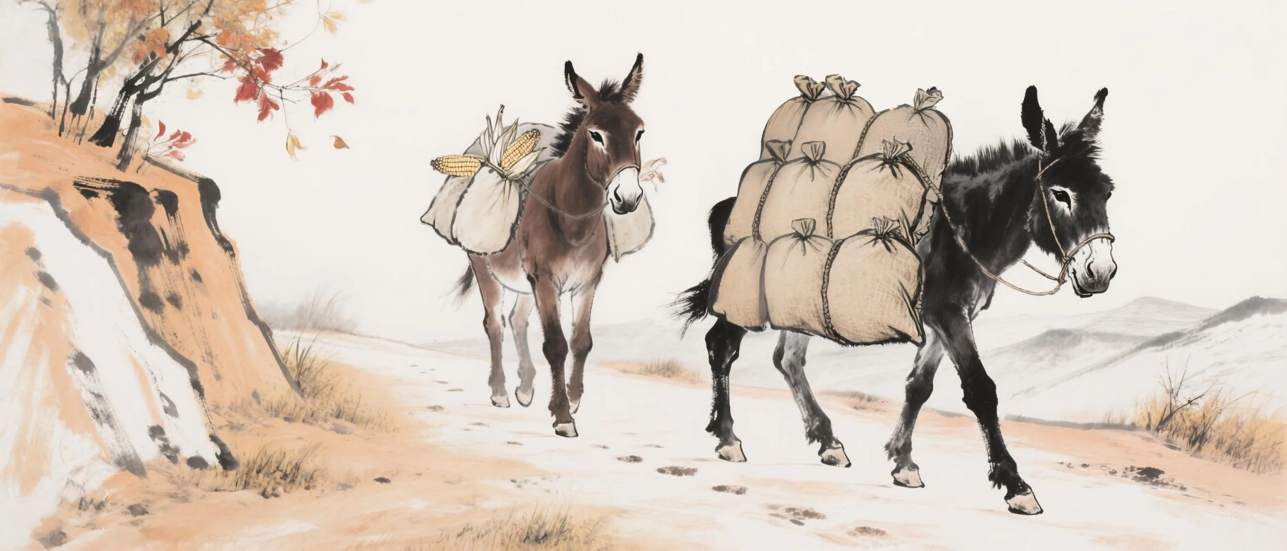 这个将古典东方美学与前沿数字智能相结合的提议,瞬间打动了郑旭。他欣然接下挑战。最终,他与孙立军搭档,以黄胄笔下经典的“小毛驴”为主角,开启了AI水墨动画《黄土坡》的创作。孙立军常驻北京,郑旭的日常创作基地则在温州,两人构成了一个高效的“云端组合”。这背后,是一种清晰的分工与协作:北京孙立军,以其深厚的学术积淀,负责在美学与艺术高度上“定标”;温州郑旭,则以灵活的数字实践,负责在具体技术路径上“试错”与生长。
