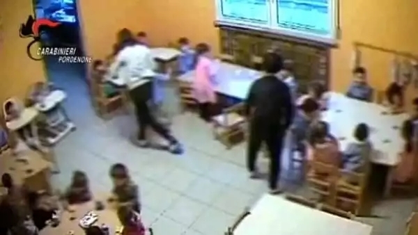 意大利今日网消息,吼叫、拍打以及其他各种暴力行为,波代诺内省一所私立幼儿园的学生们就是被这样虐待和凌辱的。日前,警方已对年龄分别为46岁和20岁的2名涉案教师提出起诉。此外,另两名教师和一名勤杂工也以同样罪名被提出控告。