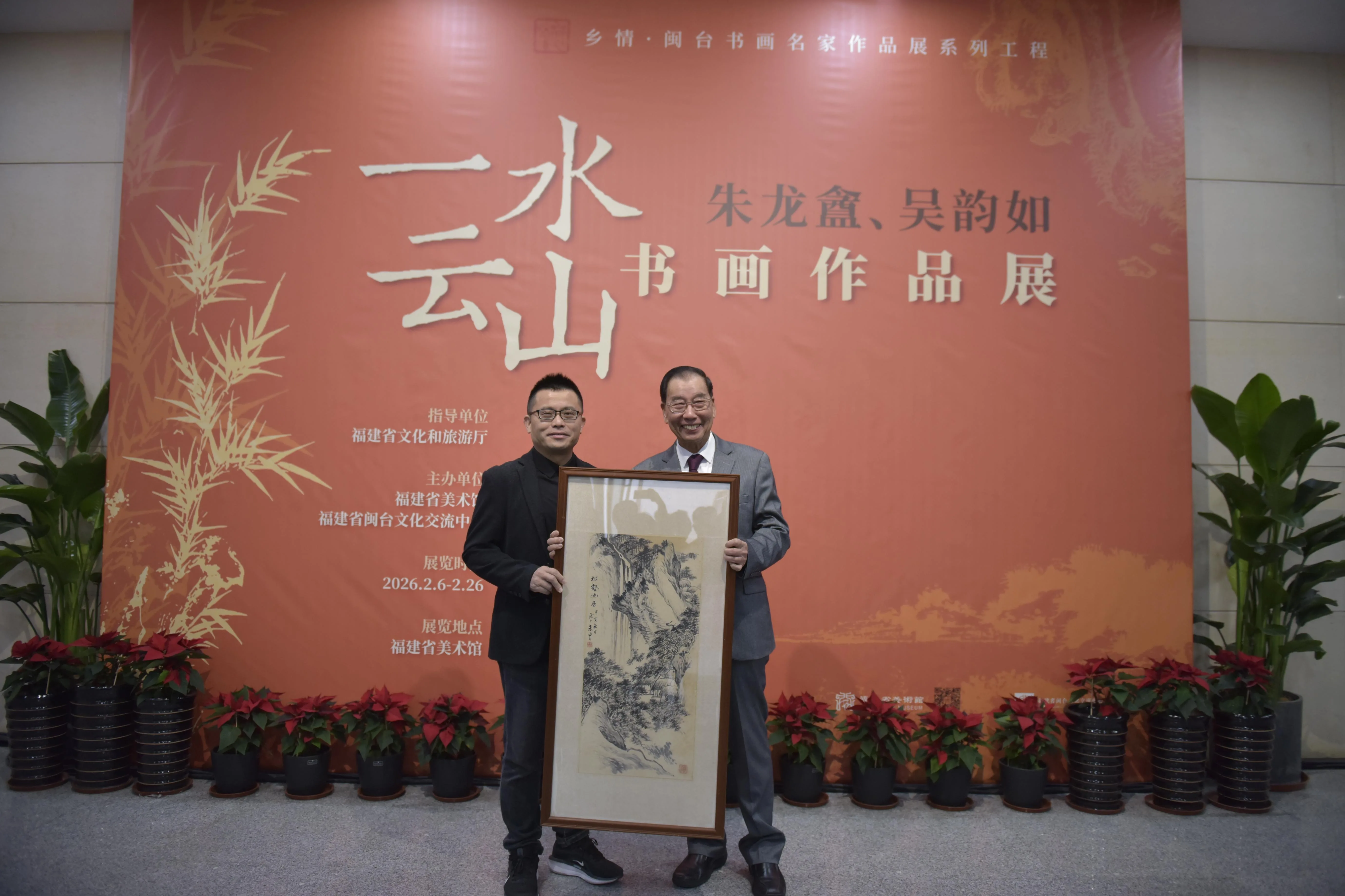 笔墨传情,山海同心。此次“乡情・闽台书画名家作品展系列工程——一水云山:朱龙盦、吴韵如书画作品展”,既是一场跨越山海的艺术之约,也是一次承载乡愁的文化溯源。本次展览由福建省文化和旅游厅指导,福建省美术馆、福建省闽台文化交流中心联合主办,展览将持续至2月26日,期间免费向公众开放。
