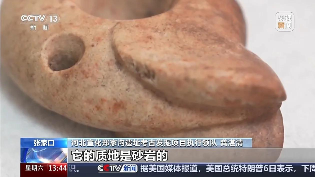 河北宣化郑家沟遗址考古发掘项目执行领队 龚湛清:它的质地是砂岩的,不是红山文化常见的岫岩玉,与红山文化虽然相似,但并不完全一样。