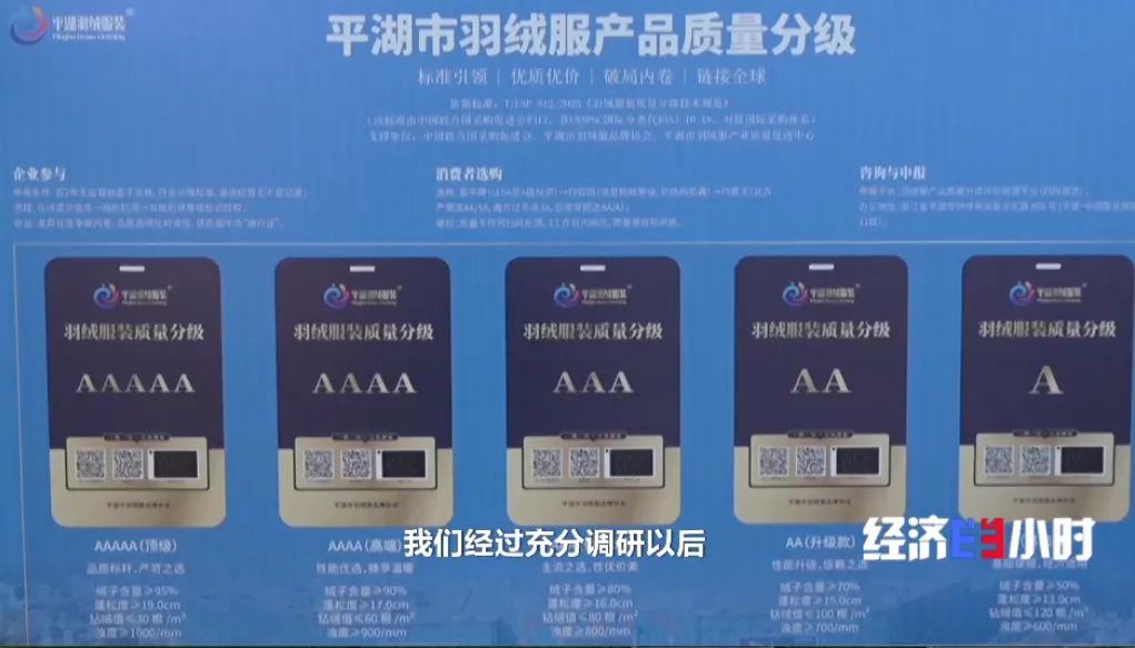如今平湖已成为全国最大的羽绒服制造基地之一,羽绒服年销售额突破500亿元。在体量不断做大的同时,如何推动产业从“规模领先”向“质量取胜”转型,成为需要破解的发展课题。当地在2025年推出了羽绒服质量分级制度。