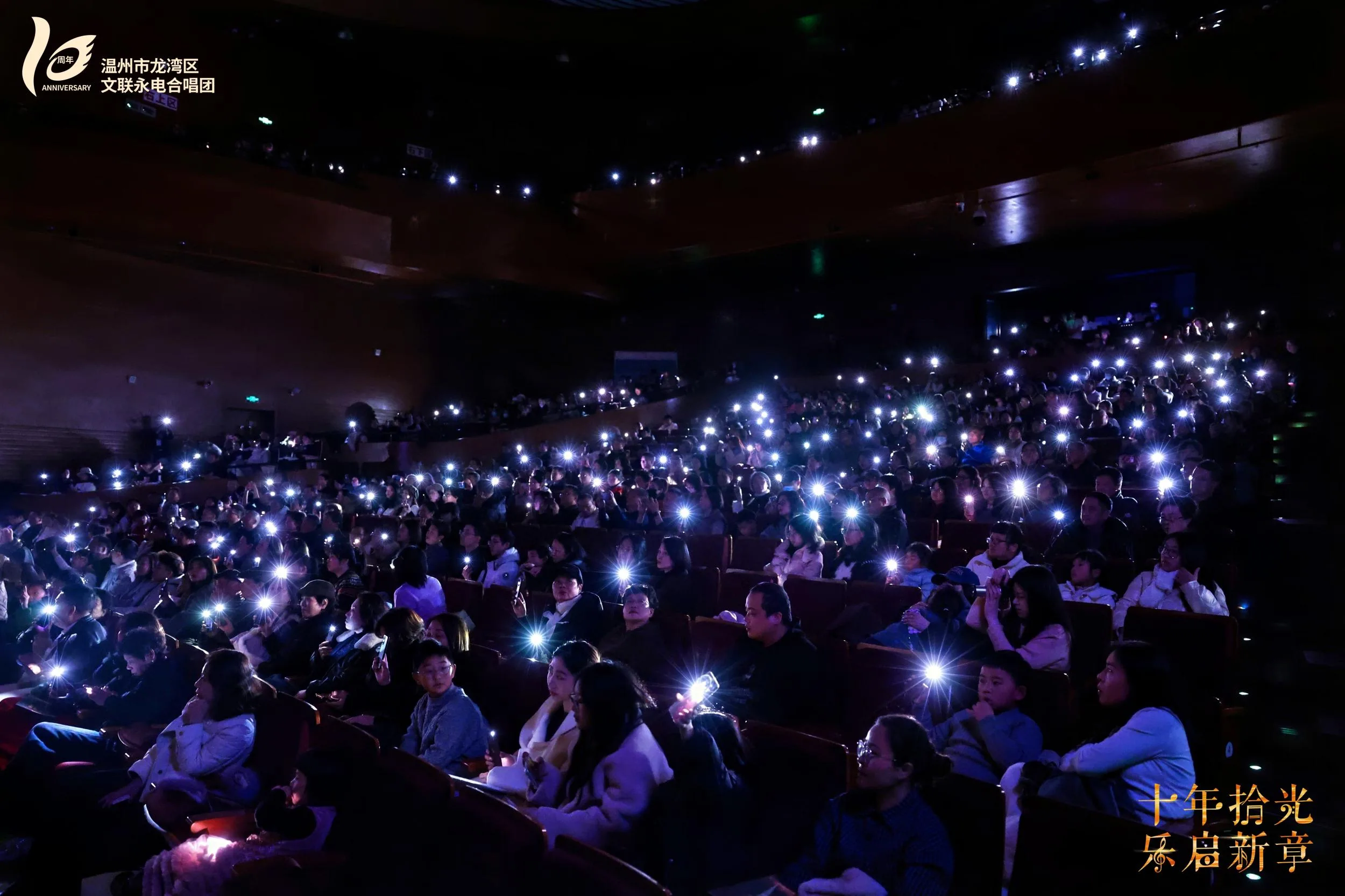 2月7日晚,温州高新文化广场大剧院内和声流转、星光点点。“十年拾光 乐启新章”——温州市龙湾区文联永电合唱团成立十周年专场音乐会在此精彩上演。来自龙湾各行各业的合唱爱好者同台放歌,用一场诚意满满、情感充沛的音乐会,回望十年合唱之路,也为观众献上了一场直抵人心的视听盛宴。