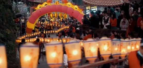 永泰椽板龙为省级非遗,明末清初源于埔埕。龙身取古建椽板,通体髹红,缀四灯覆红绸,龙头威仪。元宵时三姓共举,锣鼓开道,穿巷绕户。村民焚香迎龙,共祈安康。此俗凝聚乡情,赓续邻里同心之传统,红火烛光映照百年乡愁。