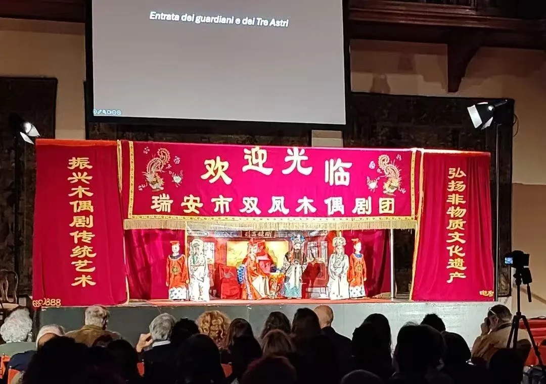 11月,瑞安木偶戏赴意大利威尼斯和巴勒莫两地开展三场提线木偶专场表演,以原汁原味的瓯剧唱腔搭配中意双语字幕,让意大利观众深切感受温州优秀传统文化,读懂木偶戏背后的中国美学。此次活动受到国际性媒体的广泛关注和高度肯定。《八仙庆贺》、《杨正明启程》两出剧目中的12具木偶受邀入藏巴勒莫国际木偶博物馆,串联起东西方文明。近年来温州致力于打造“让世界看见温州非遗”品牌,多次组织非遗项目、传承人进行跨国文化交流,在国际舞台上精彩绽放温州非遗的独特魅力,持续提升国际传播力。
