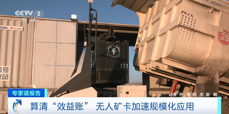 记者在现场看到,一台无人矿卡6分钟内就能自动完成一次电池更换。矿长舒应秋告诉记者,早在投入4亿元左右研发购置第一批无人矿卡之前,他们就详细算过“效益账”。