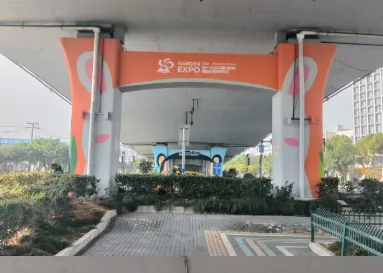 此次城市氛围项目突破以往依赖大型喷绘布幔的模式,首次大规模采用桥墩直接彩绘的创作形式,该创新之举来自温州市新闻传媒中心城市氛围团队“灵感”。彩绘材料以环保艺术彩绘替代传统喷绘,相较于喷绘存在易褪色、难降解的问题,环保水性颜料彩绘更耐久、抗风化,且杜绝了布料废弃物的产生,践行了园博会绿色、低碳、可持续理念。