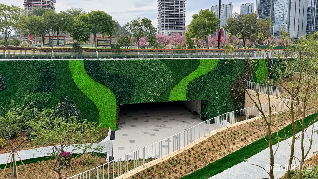 临近汤家桥路,绿廊也为游客备好了一个“无红绿灯”的过街妙招:下沉广场就设在前方,顺着无障碍坡道经地下廊道就能轻松通过。