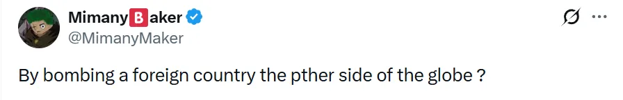 还有人质疑并反问,“通过轰炸地球另一端的外国(来实现)?” ↓