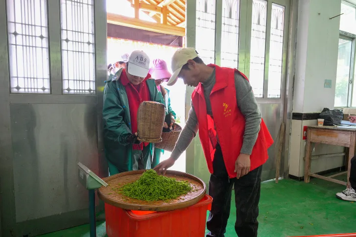 此外,有的志愿者则为忙碌的茶农们送去温热的茶水,叮嘱大家注意休息、劳逸结合,用贴心服务为茶农驱散疲惫,还帮助茶农登记、核对茶叶重量。