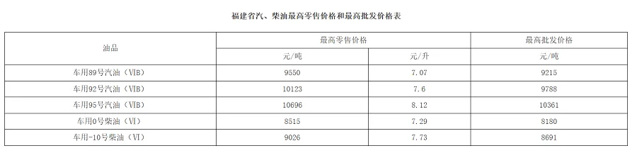 调整后的福建油价。