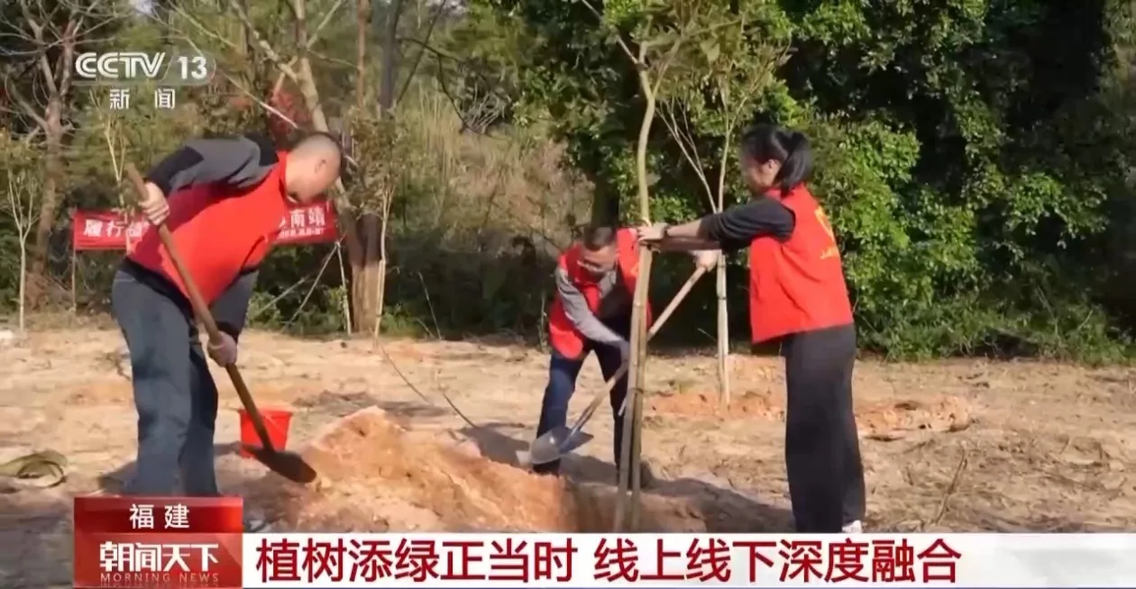 在福建漳州南靖县,志愿者们趁着晴好天气植树增绿。近年来,南靖县不断拓展义务植树尽责形式,推动线上预约、网络捐资与线下体验深度融合,打造出集多种尽责方式于一体的义务植树基地。