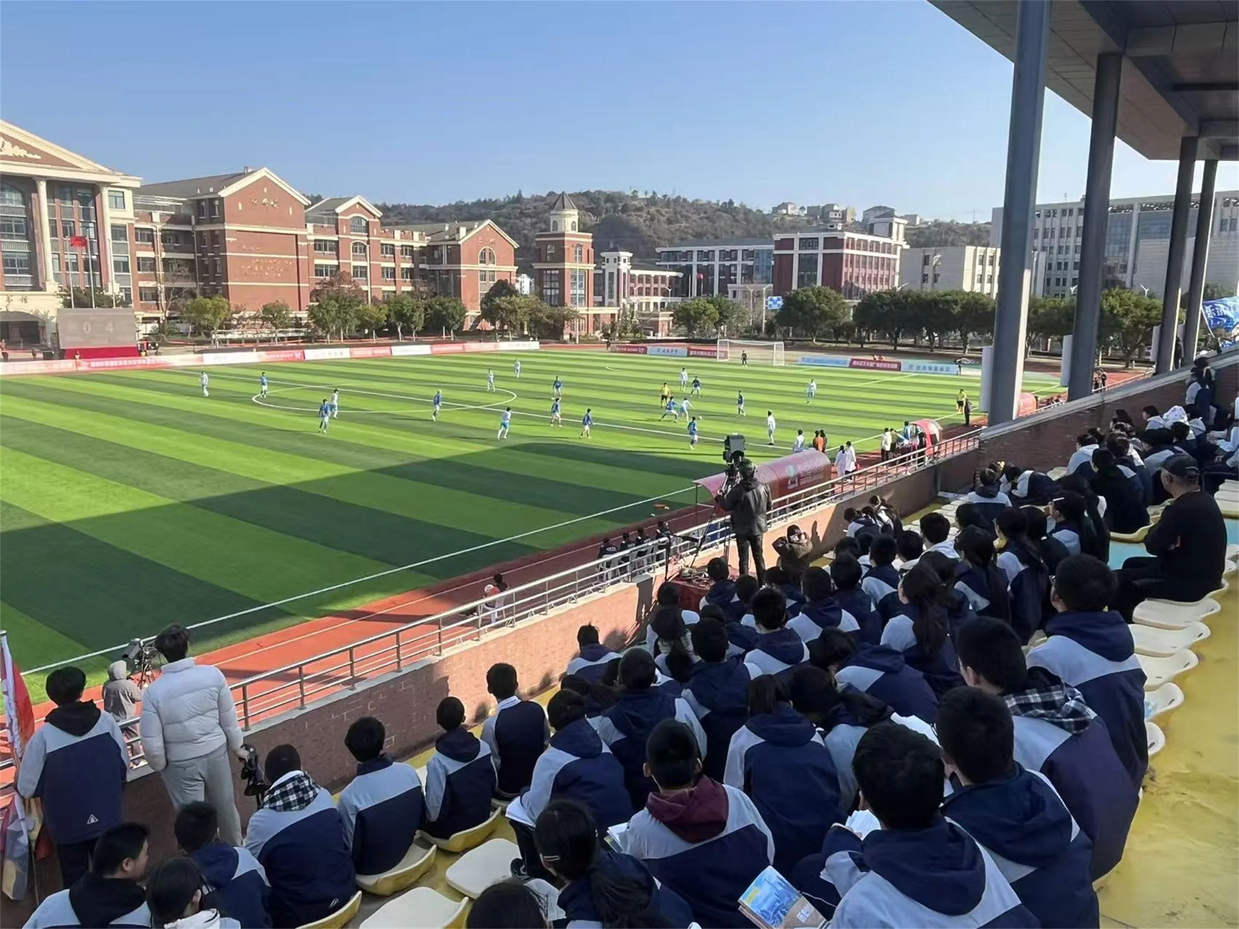 比赛当天下午,赛场周边停满车辆,不少球迷早早抵达,呐喊声、助威声此起彼伏。现场,洞头海霞中学的学生们组团前来观赛,为家门口作战的洞头队加油鼓劲。