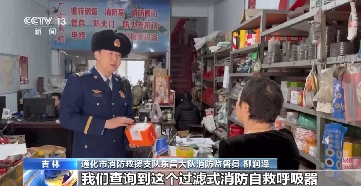 通化市消防救援支队东昌大队消防监督员 柳润泽:经过消防产品信息网的查询,查询到这个过滤式消防自救呼吸器没有强制认证证书,所以你这是一个不合格的消防产品,要立即更换。