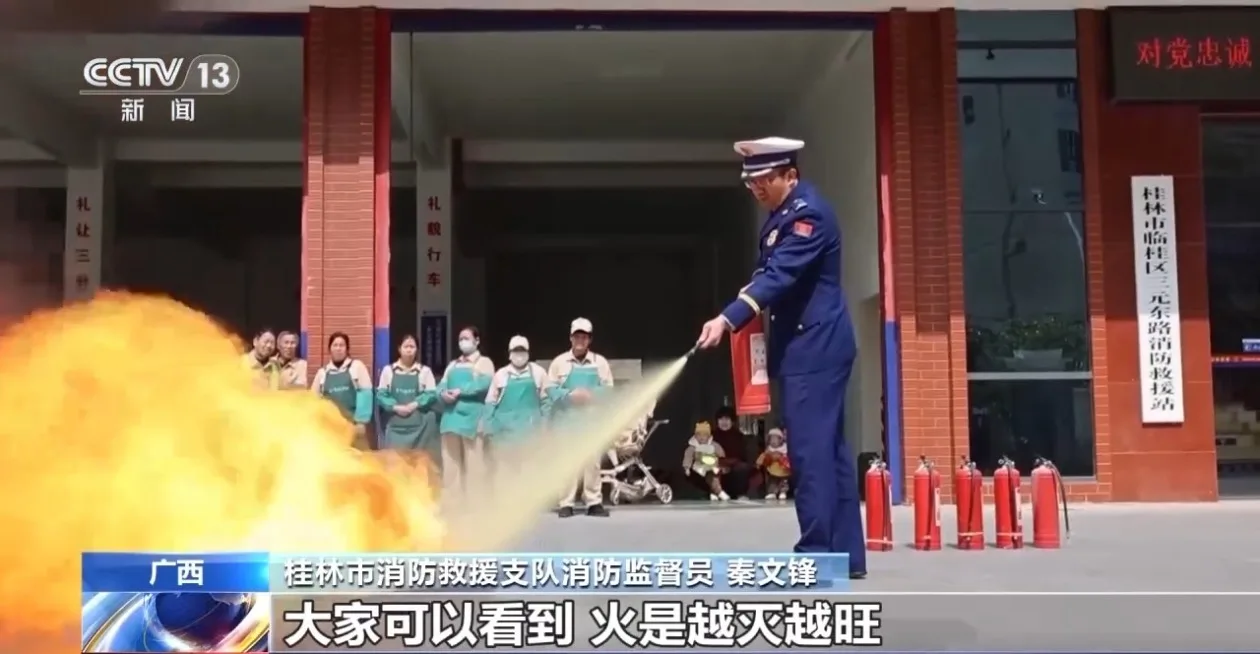 假冒伪劣消防产品一旦流入校园、住宅小区等人员密集场所,关键时刻极易引发严重安全后果。广西桂林消防部门近期通过真火试验,发现不合格灭火器不仅很难灭火,还可能让火越烧越旺。