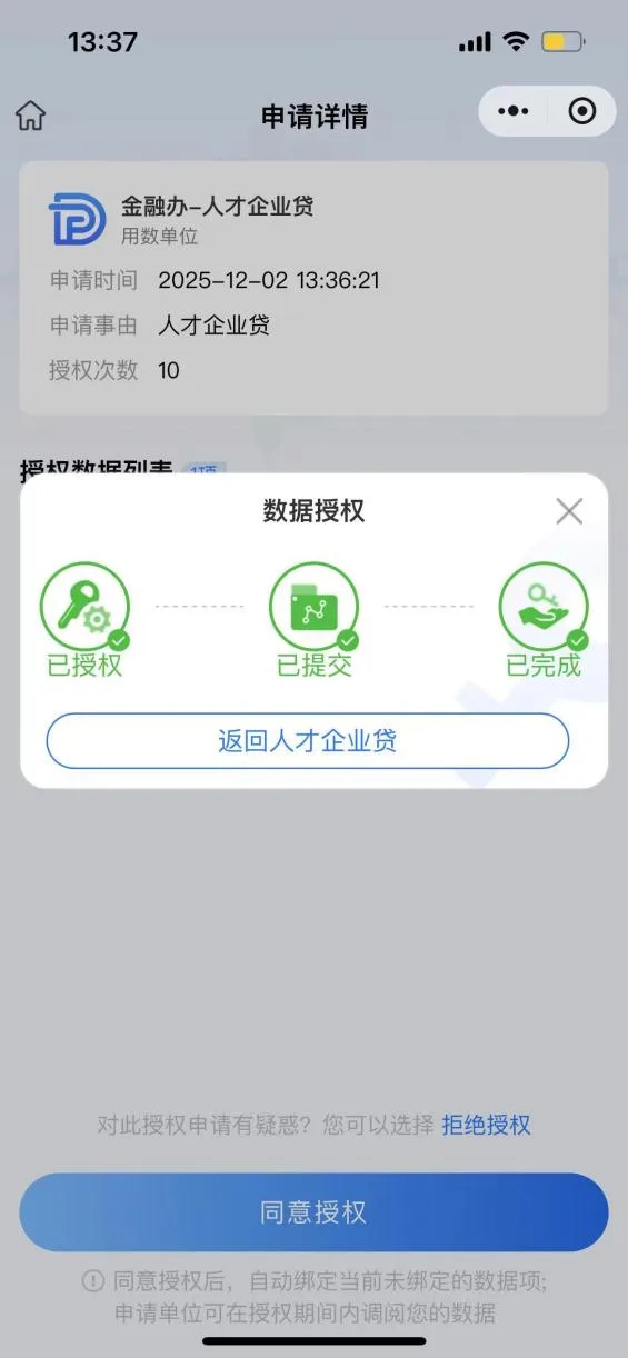 06.人脸识别成功,点击返回人才企业贷