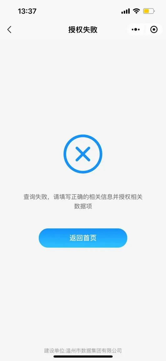 注意:如果在办理过程出现以下界面,主要为企业名称、法人姓名、法人身份证和人脸某一项未通过核验,需要申请人再重新核对一次以上内容。如还是无法解决,可联系系统工作人员88967891