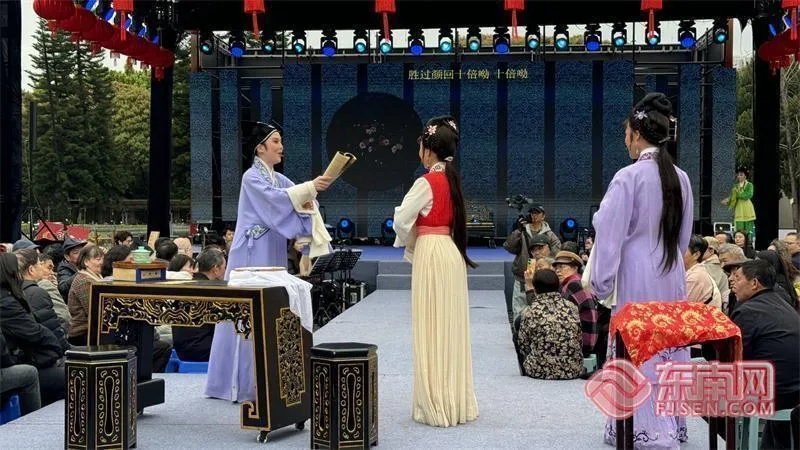 在福州西湖公园古堞斜阳,《宋韵千年·诗词福建》沉浸式演出周末开演,游客伴着湖光山色感受闽韵风雅;泉州提线木偶戏、漳州芗剧等非遗剧目走进社区剧场,让传统艺术贴近大众。