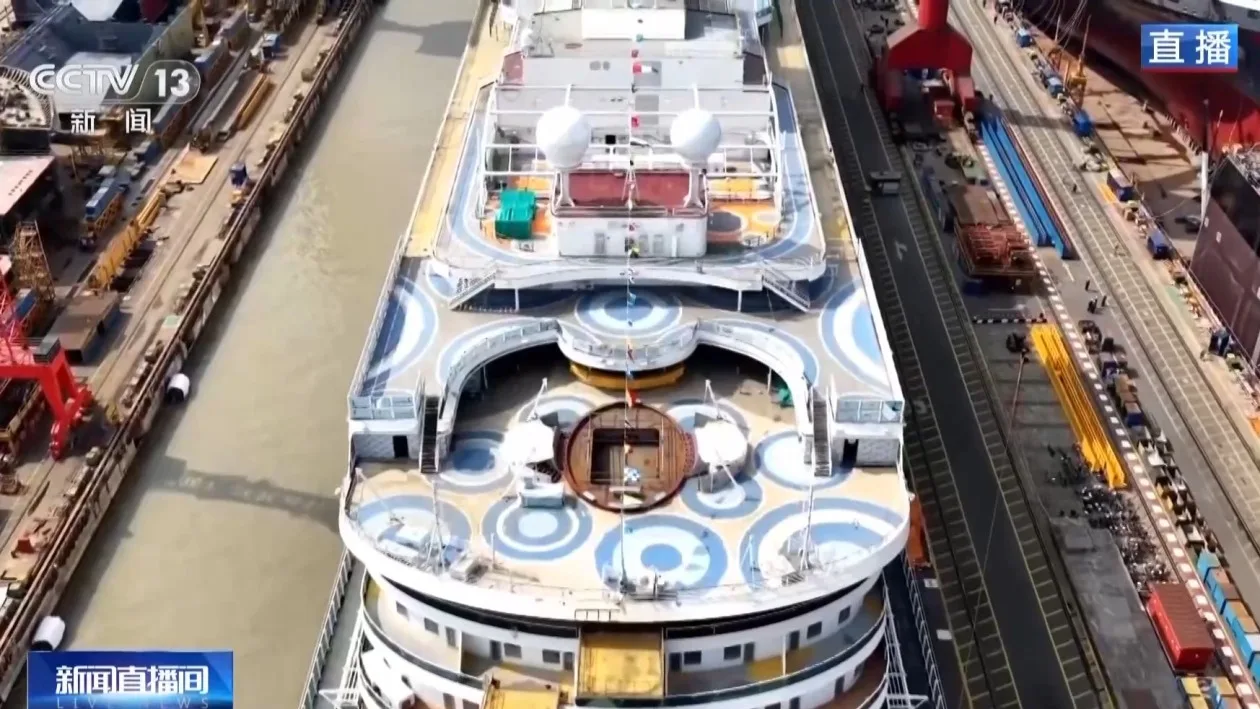 总台记者 肖冰毅:我现在所在中船集团上海外高桥造船的2号船坞旁。此刻,第二艘国产大型邮轮“爱达·花城号”已经挂上了彩旗,整装待发。再过三个小时左右,就将正式开始出坞作业,这艘海上的移动花城将移泊到码头位置,这也标志着这艘船的主体建造工作已基本完成,转入下一步的内装建造和试验工作当中。