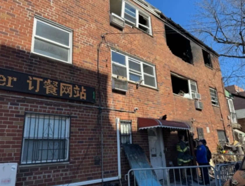 火灾发生在Avery大道132-05号,这是一栋建于1970年的老旧住宅。火势来势凶猛,三楼被完全烧空,屋顶被烧穿,整栋楼呈现出触目惊心的焦黑状态,二楼严重受损,内部几乎成为废墟。现场记者形容,“满目疮痍,一片死寂”。