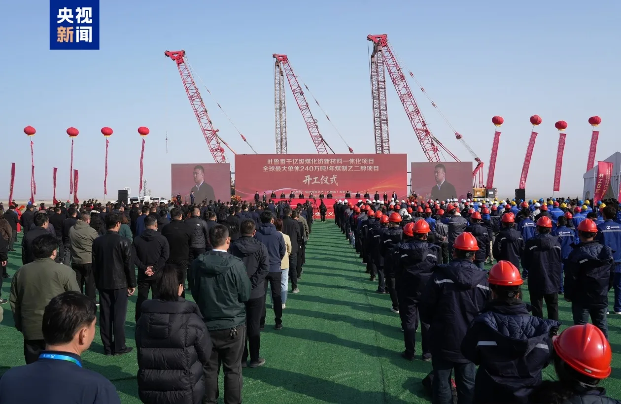 3月20日,在新疆吐鲁番经济开发区,吐鲁番市240万吨/年高品质纤维用煤制乙二醇项目正式开工建设,这也是目前全球最大单体煤制乙二醇项目。