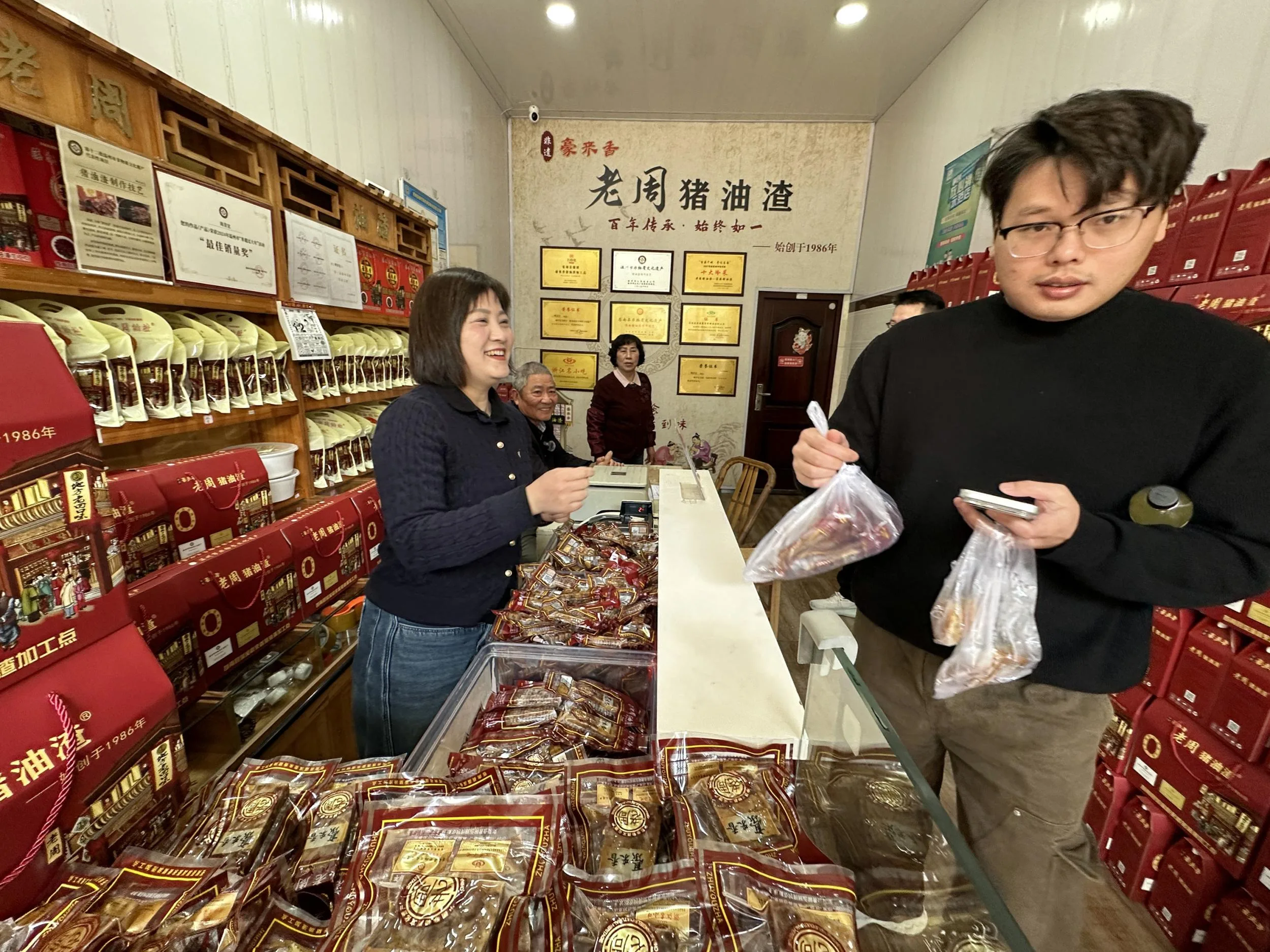 如今,周青宣女儿周小惠接手工坊管理、店铺营销,常有人劝他们放宽标准、扩产增收。“本地优质五花肉的供应量就这么多,盲目增产肯定要牺牲口感,老顾客吃了几十年,一口就能尝出差别,我们不能砸了父辈守出来的招牌。”周小惠认真道。现在“老周”工坊每天固定用600斤猪肉,仅产出90斤油渣,仍在坚持以质定量。