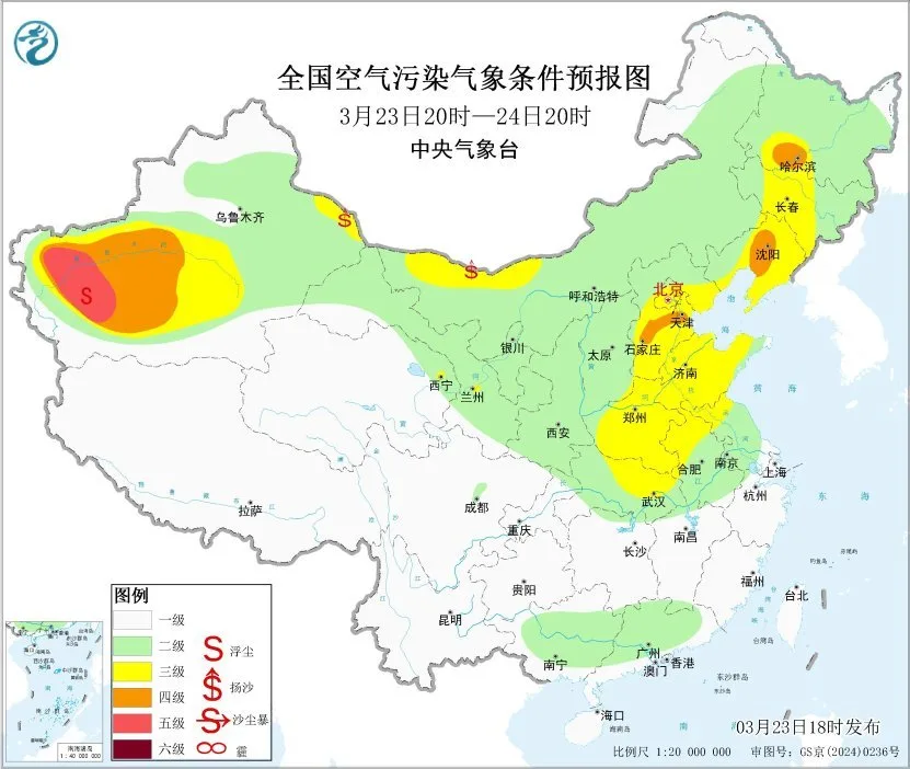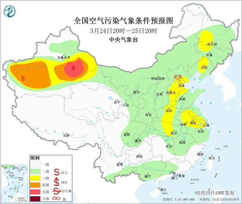 未来一周,全国大部地区大气扩散条件一般,华北中南部、黄淮中西部等地的部分地区有轻度霾天气。此外,23日夜间至24日上午,辽宁中南部、江苏、四川盆地东部、广西北部等地有大雾天气,局地有浓雾或强浓雾。