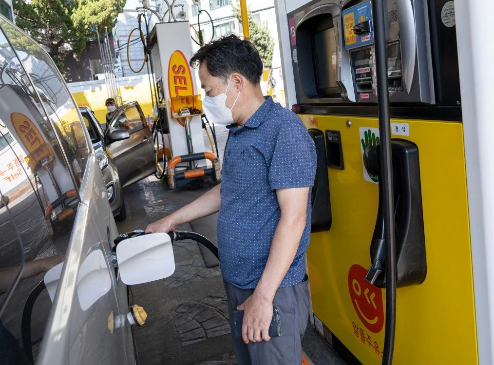 2022年5月27日,市民在韩国首尔一家自助式加油站加油。新华社发(李相浩摄)