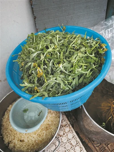 热腾腾的炉火前,是一大盆等待制作的新鲜嫩绿的棉菜。据介绍,正宗的温州棉菜饼制作工序考究:需采摘新鲜棉菜嫩叶,经仔细清洗、焯水、捣烂等多道工序后,再与糯米粉和粳米粉按特定比例揉搓成团,才能呈现出独特的韧性口感。林女士说:“我们的棉菜都是从平阳、文成订购的,那里品质上乘。”说话间,一辆满载二百斤棉菜的车子抵达店门口。