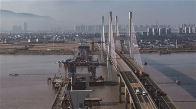 甬台温高速改扩建温州大桥段是省“千项万亿”工程,承担“斜拉索桥全桥高品质换索关键技术”和“公路固化土桩设计与施工成套技术”两项省级“揭榜挂帅”任务,项目组以技术创新破解瓯江复杂地质、临近运营桥梁作业等难题,创新监理机制,推行“费率+单价”计价模式,并投用全省首个监理“数智指挥舱”,布设临近高速防侵入预警、桥下吊装防碰撞预警等系列智能系统,构建起全域数智管控体系。目前,梁板架设、北航道桥主塔施工正有序推进,“姊妹桥”雏形初显。
