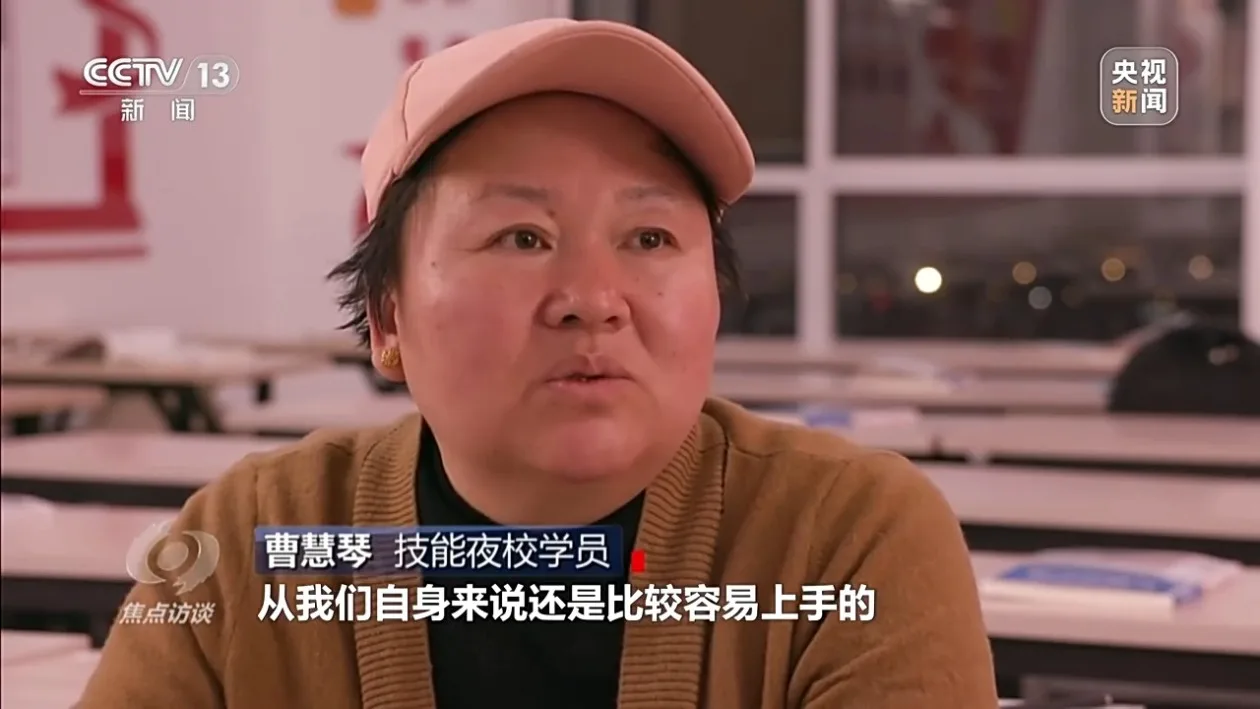 技能夜校学员 曹慧琴:像我们现在去找好一点的单位,体力啥都跟不上。但是照顾老人,从我们自身来说还是比较容易上手的。所以自己要提前规划,不能等。利用晚上学习,我们能掌握更多技能,技多不压身,自己将来就业稍微路子宽一点。
