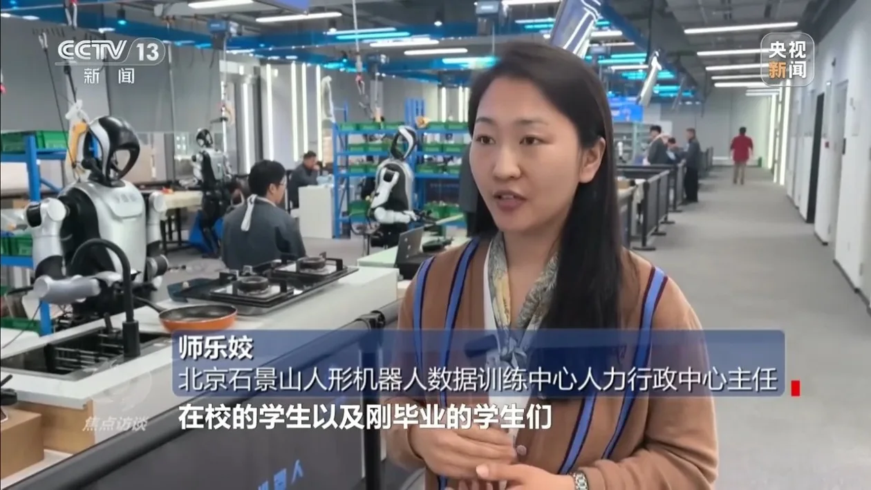北京石景山人形机器人数据训练中心人力行政中心主任 师乐姣:数据采集员是一个很新兴的岗位,主要是以校企合作等的模式。所以来的这些员工基本上是在校学生以及刚毕业的学生们。机器人训练师并不是只教机器人去做动作,其实是将人类的一些经验教给机器人,只有他们把数据采集得足够量大、足够准确,才能让机器人行业发展很快。