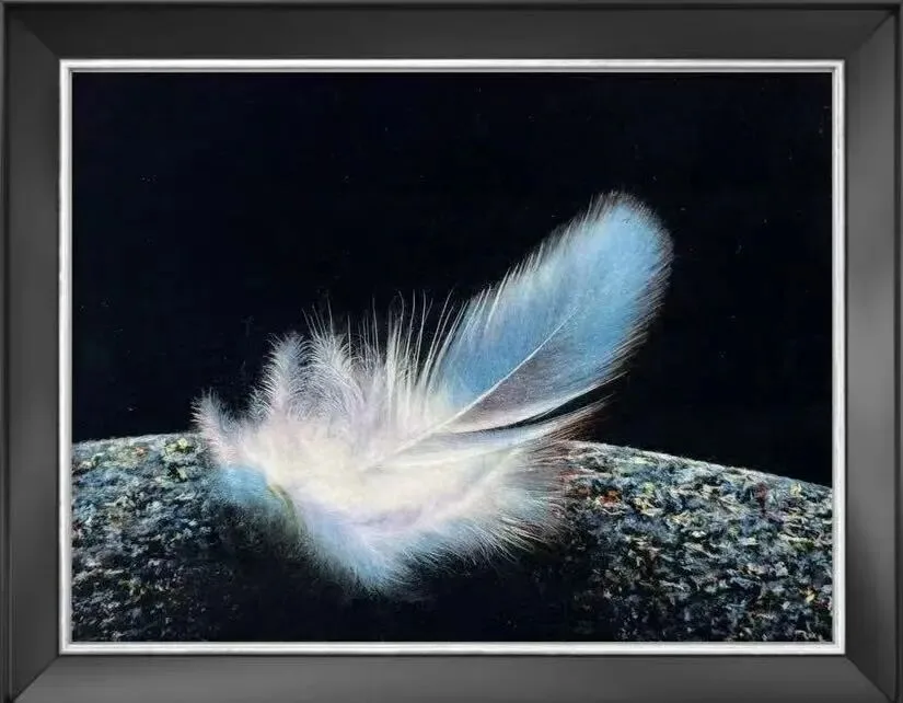 他的创作方法是不使用任何胶水或粘合剂,仅通过纯手工的手搓、拉伸、捻转、捡理等技法,将棉纤维塑造成图像,并依靠静电与材料自身的张力固定成型。作品呈现出既具绘画性又富有立体感的表面效果,宛如低浮雕般在光线中呼吸。