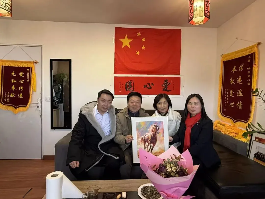 中国工艺美术大师袁洪滨及夫人王玲曾两次拜访法国爱心团,在今年2月份到访爱心团时,得知法国爱心团正好成立五周年,他们表示:他们在国内也一直关注着爱心团,爱心团做的都是了不起的事情,都很有爱心。因此他们决定将在巴黎大皇宫展出过的五幅丝棉画捐给爱心团,用于慈善义卖。