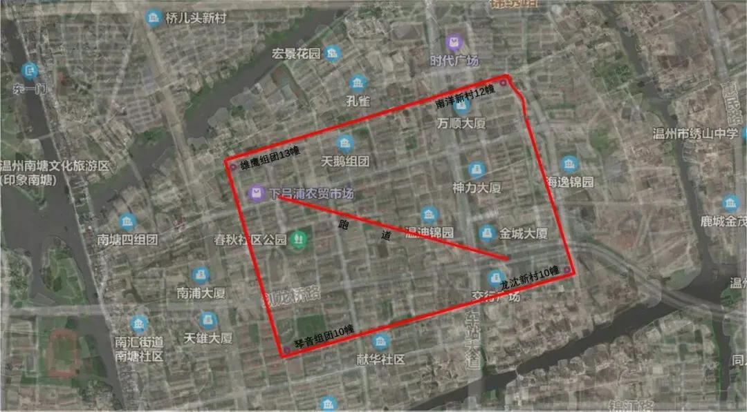 南塘机场当年有多大呢?东西长约1000米,南北宽700米,占地面积1060亩左右,具体位置大致是东北角在南洋新村12幢附近,西北角在雄鹰组团14幢一带,东南角靠近龙沈新村10幢,西南角在琴音组团10幢周边。机场跑道是西北东南走向,从今天下吕浦农贸市场东南侧的温迪路,一直延伸到交行广场东北侧的市府路,长约750米。