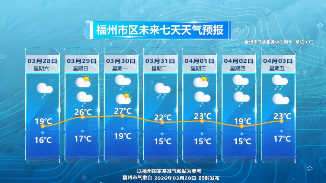 据福建气象,未来几天,福建多阵雨或雷阵雨天气,有两次明显降水过程,分别为30~31日和4月2~5日。28~29日,大部有阵雨或雷阵雨,内陆地区部分中雨,局部大雨到暴雨。30~31日,内陆地区部分有大雨到暴雨 ,雷雨时局地伴有短时强降水、8~11级雷暴大风、冰雹等强对流天气。4月1日,中南部地区有中雨到大雨。4月2~5日我省还有一次明显降水过程。