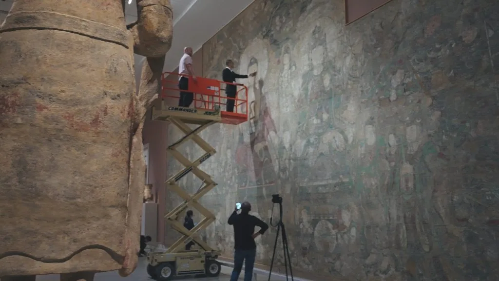 “此次合作中,大都会艺术博物馆为我们提供了诸多便利,不仅划出专门的工作区域,将游客与创作现场隔离开,还配备了升降机。”张见说,“药师佛的佛头在6米以上的位置,以前仰头看根本发现不了细节上的问题。有了升降机,我们能和壁画实现几乎零距离的接触,这对精准复刻太重要了。”中国团队的专业与严谨,也让大都会艺术博物馆主动邀请团队参与到这幅壁画后续的修复工作中。