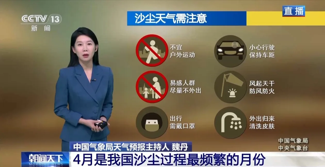 从气候统计来看,通常每年4月也是我国沙尘过程最频繁的月份,平均会有4次以上。沙尘天气建议减少外出,注意做好呼吸道防护,能见度降低时驾车减速慢行。