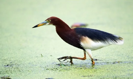 池鹭还是“变装高手”,它的羽毛会随季节变化。非繁殖期,它们的外貌比较普通,以暗黄褐色色调为主,有深褐色纵纹;到了繁殖期,它们的头、颈、胸会变成栗红色,背羽则变成紫黑色,十分亮眼。