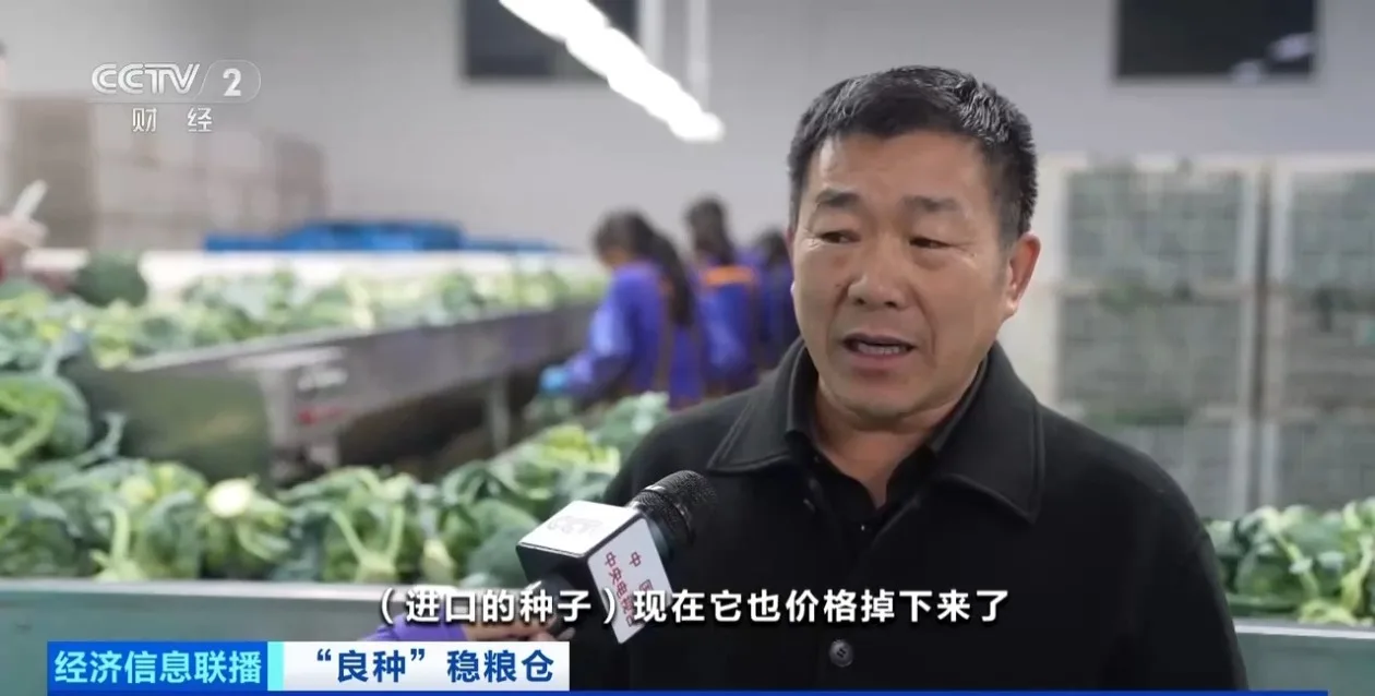 西蓝花种植户 王吕坎:我们从2020年种的国产种子占20%,到目前每年在增加,国产的种子增加到80%。进口的种子明年后年可能基本上不用了。