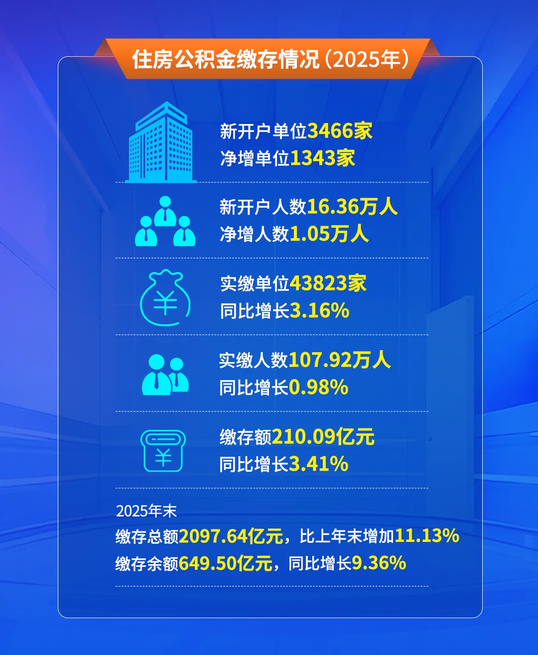 此外,推行家庭代际互助提取政策,明确职工本人、配偶及其直系亲属可申请提取公积金,用于协助偿还个人住房贷款,提取总额上限为过去12个月实际偿还的贷款本息总额,进一步盘活公积金资源。在系列服务提质增效下,2025年,全市公积金实缴单位达43823家、实缴人数107.92万人,新开户单位3466家、新开户人数16.36万人,制度吸引力持续增强。