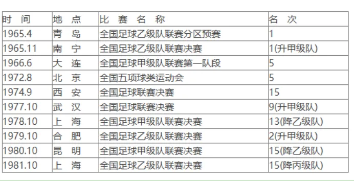 参加全国男子足球比赛名次。图片来源:福建省足球协会网站