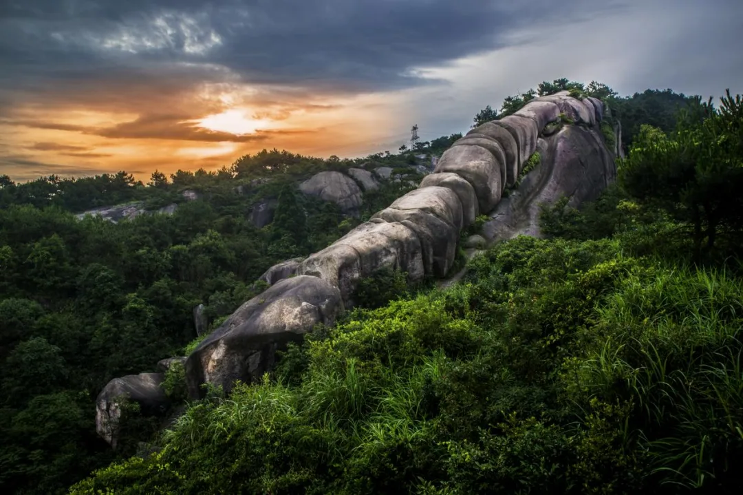 大罗山龙脊是瓯海标志性自然奇观,24块巨石连绵衔接,形似巨龙脊骨,鬼斧神工。登顶可俯瞰瓯江、三垟湿地盛景,徒步沿途景致清幽,是精品线路中必打卡的自然秘境。