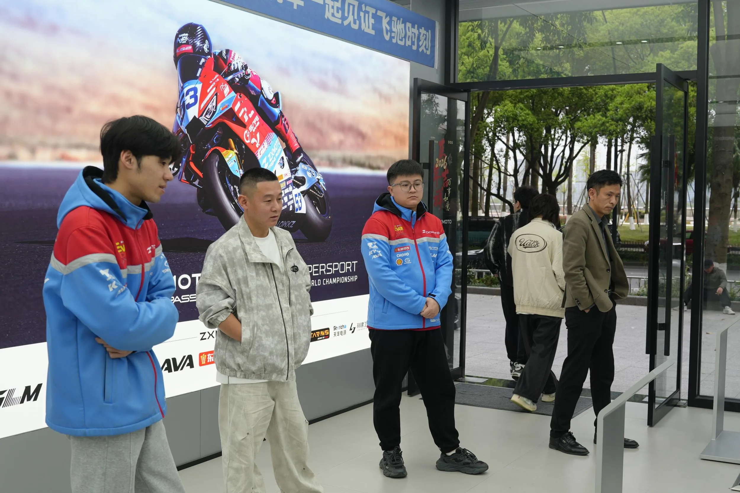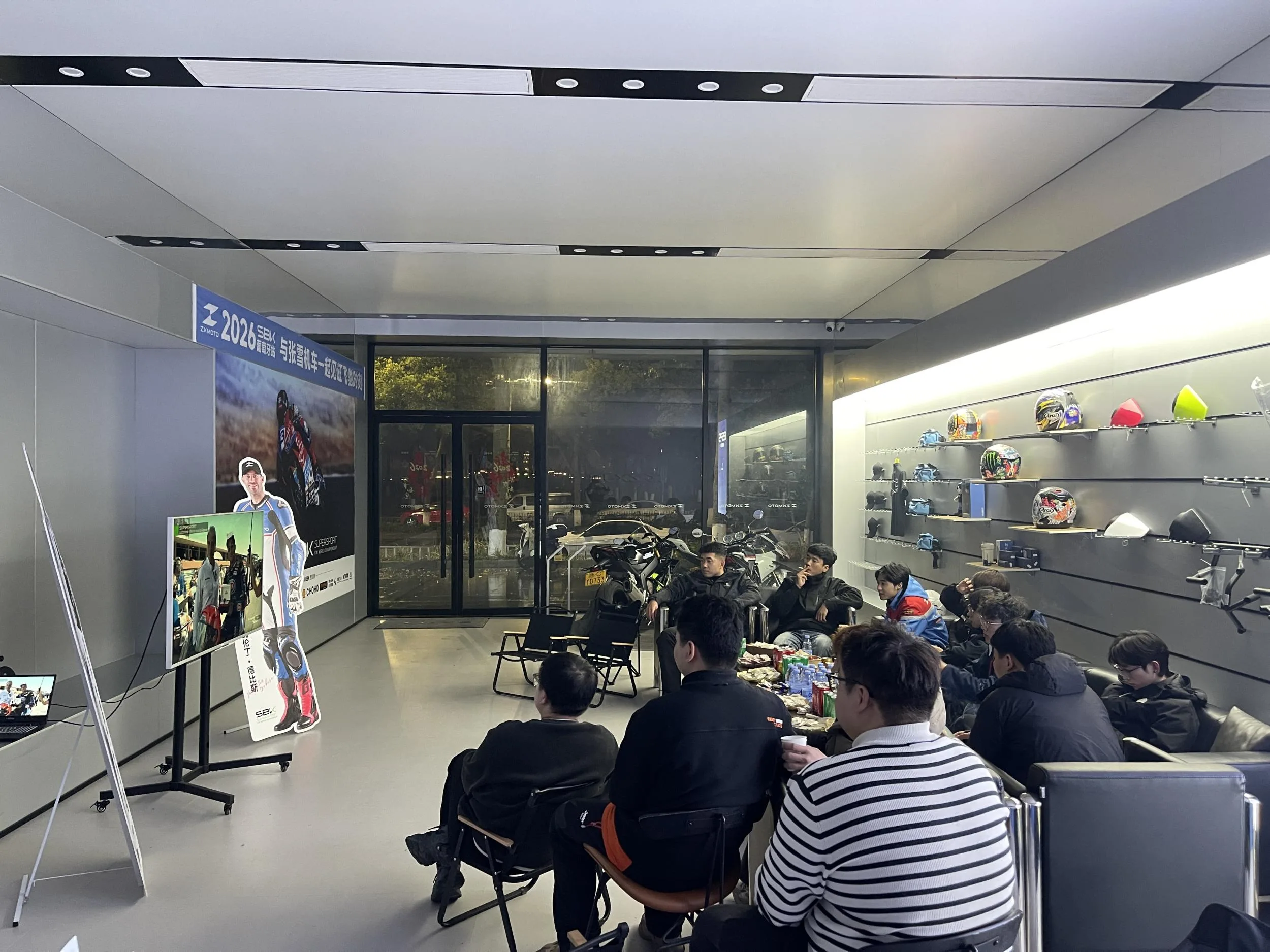 门店组织了数十名摩托车爱好者集体观赛